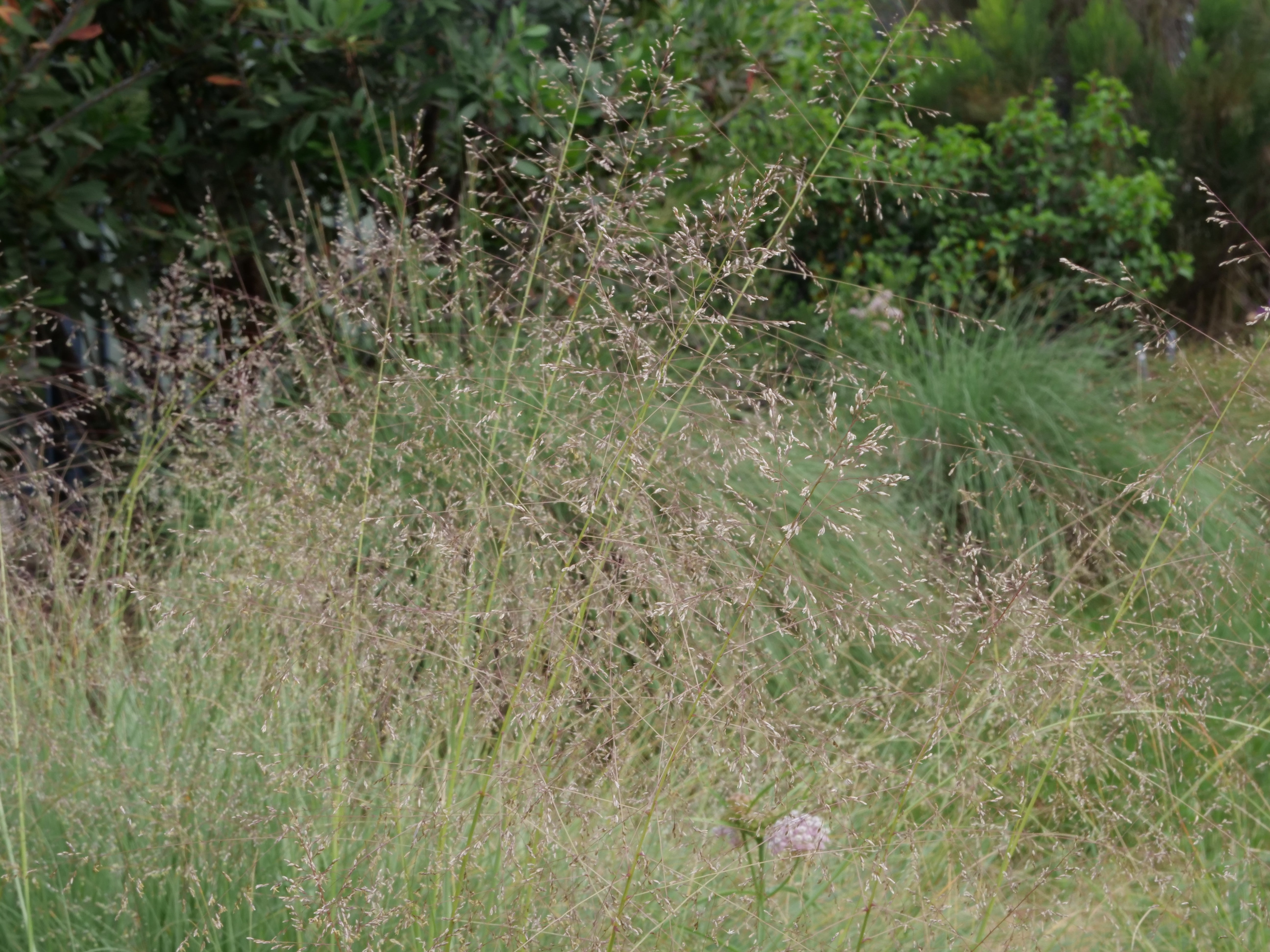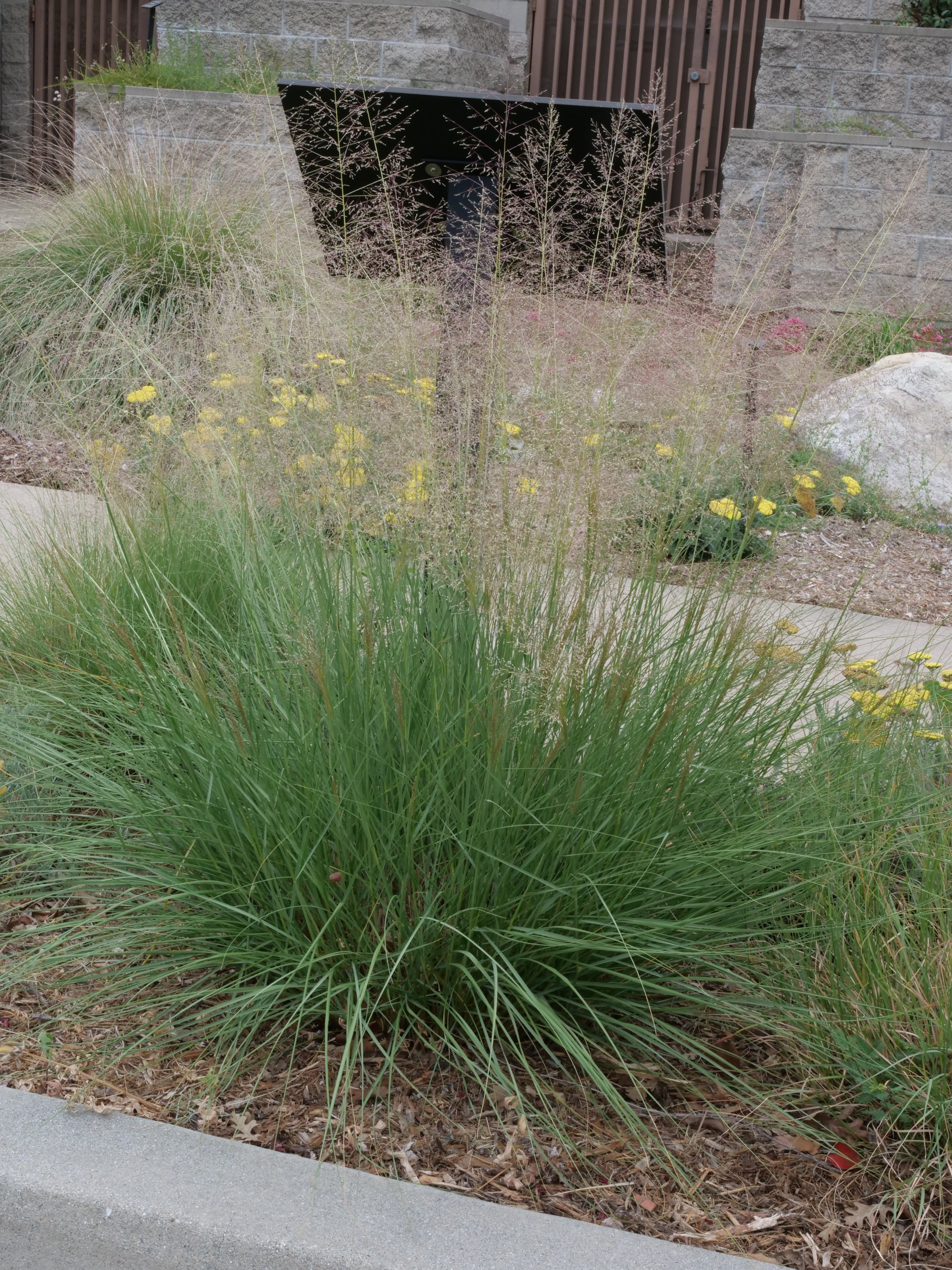 Lovely warm-season native bunch grass, a bit smaller than the more common Deergrass, with lovely highly ornamental flowers that remain attractive after they dry. Feeds skipper butterfly caterpillars. Centers of the grass bunch may be used as nesting areas for beautiful native bumblebees who have lost most of their natural habitat. Cut back to a ball shape in spring for fresh new growth in the warm weather.