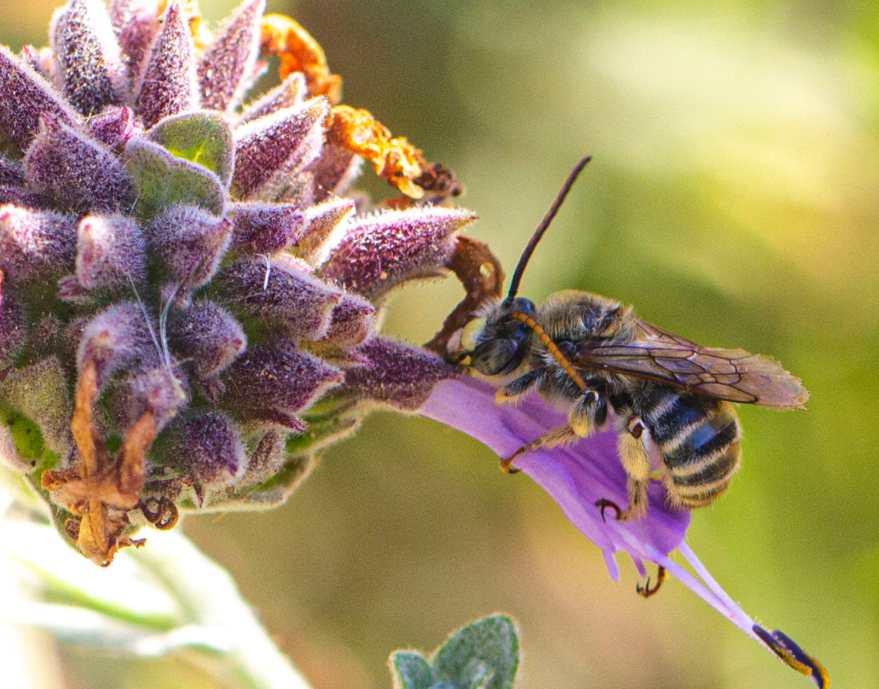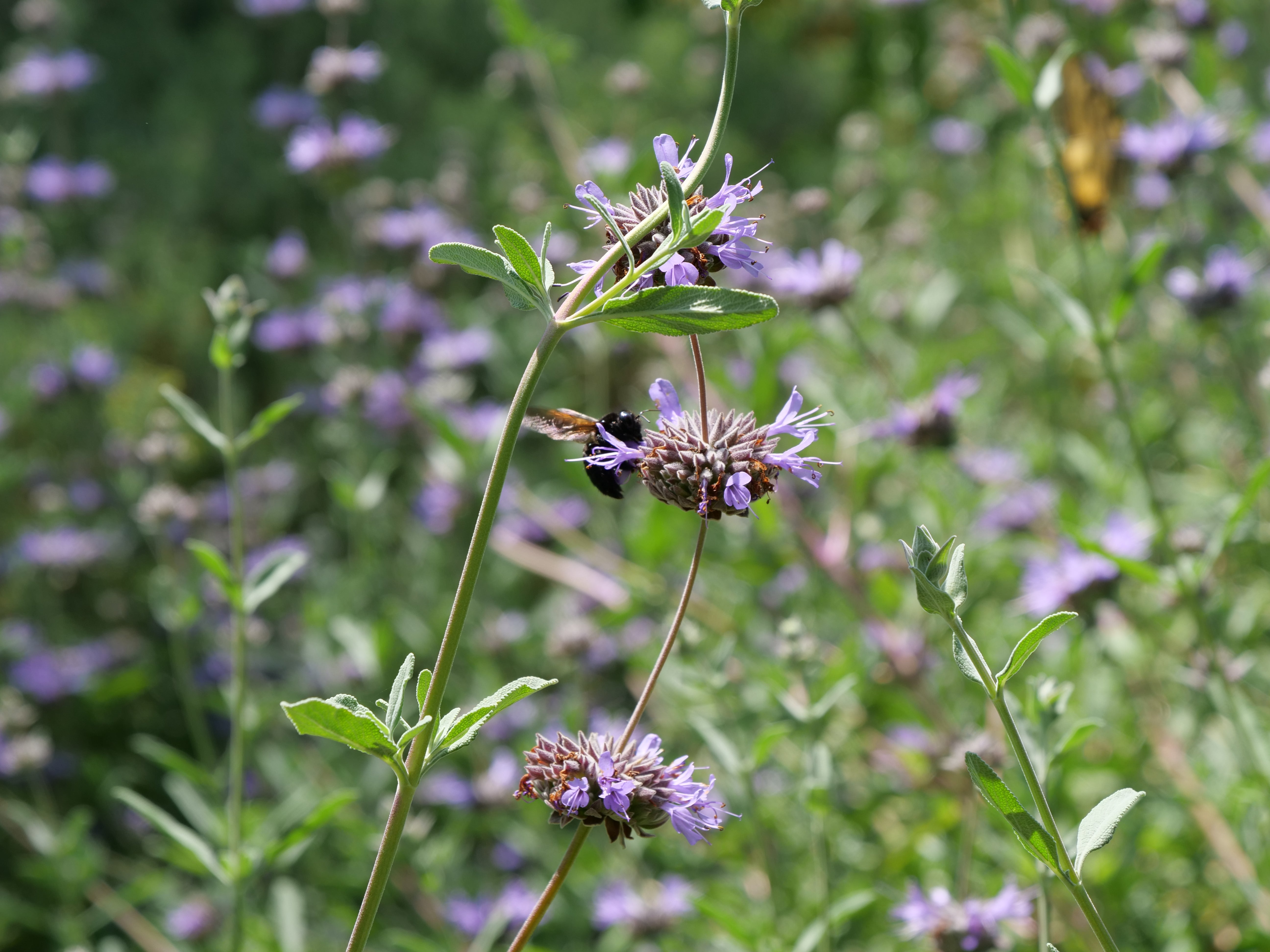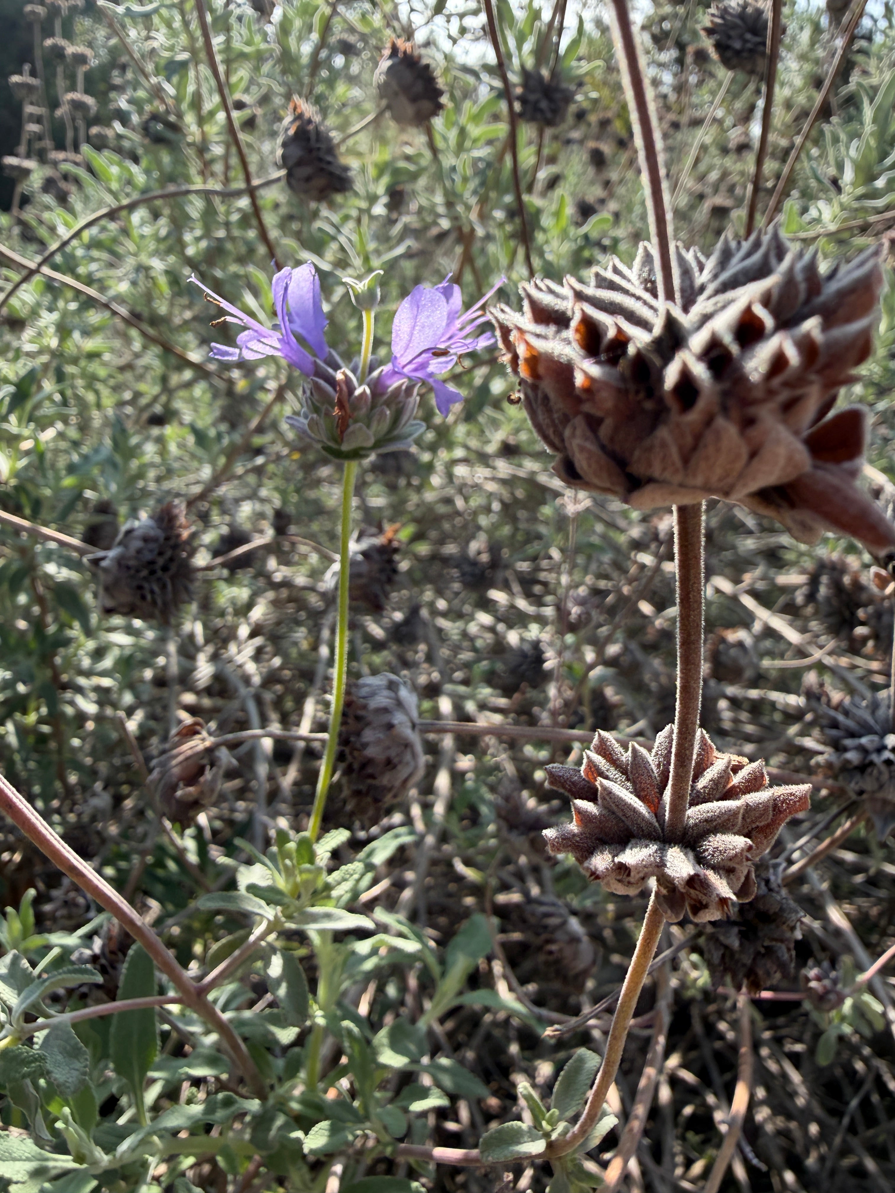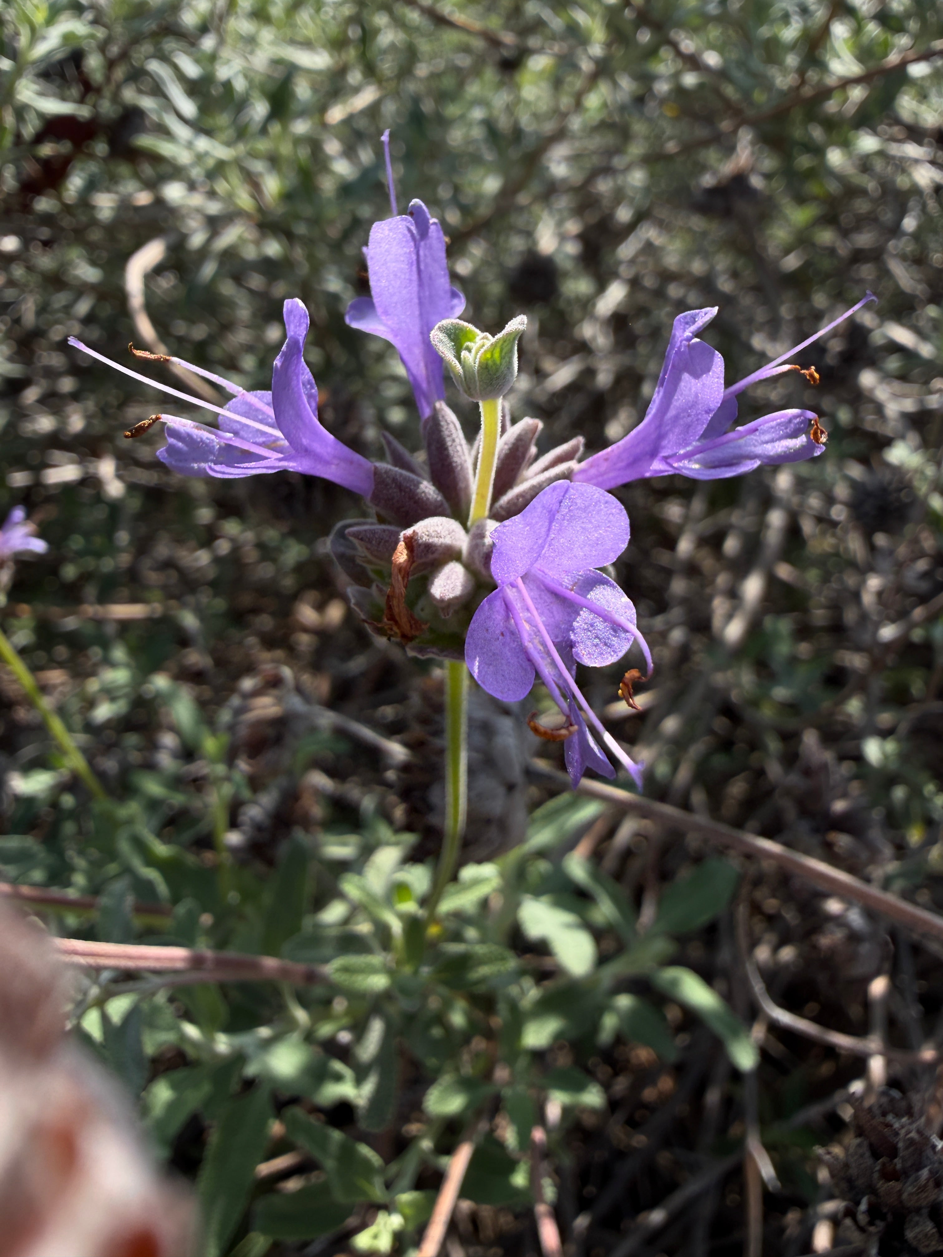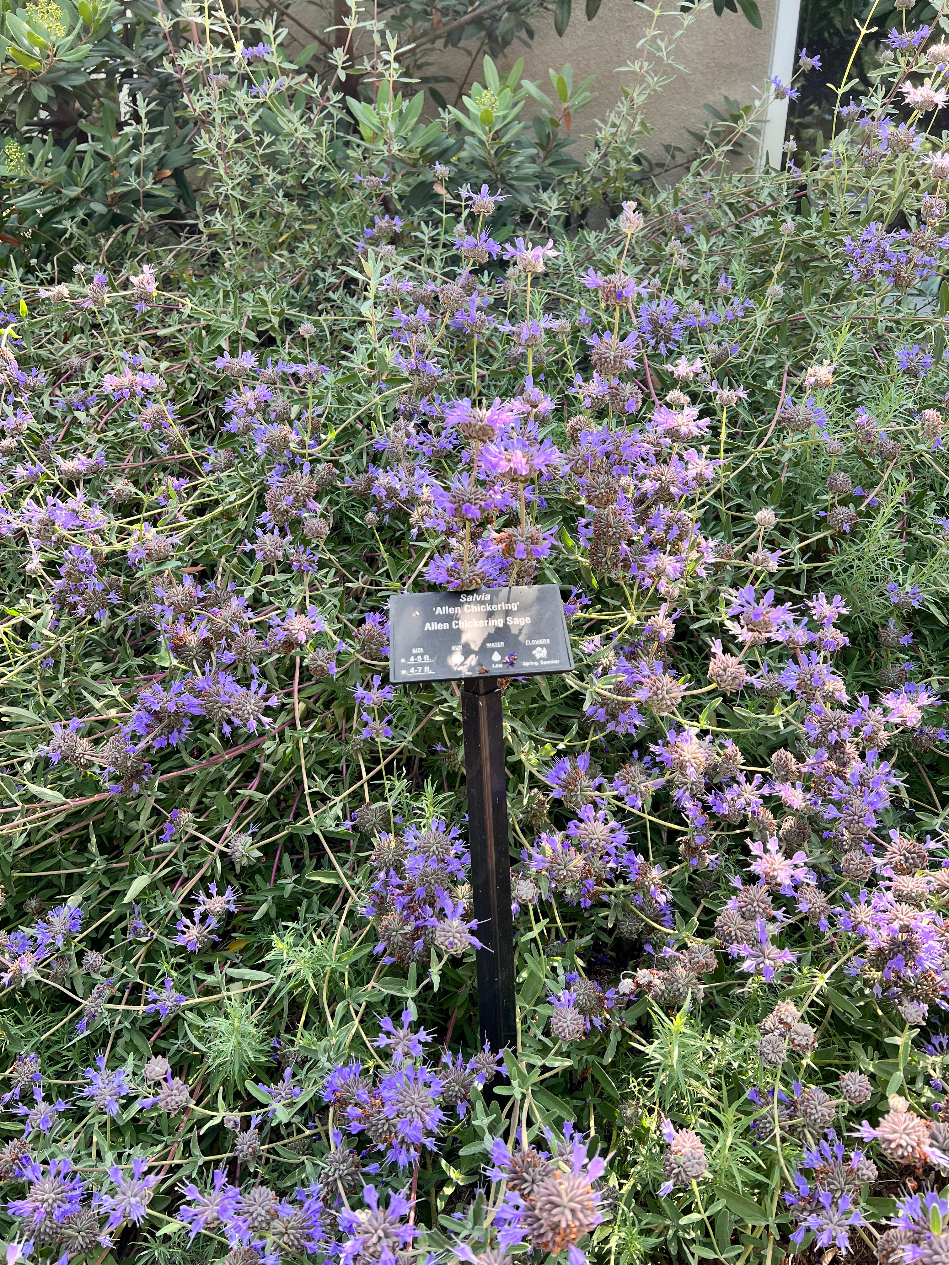 Very large CA native sage covered in purple blooms spring to early summer. Loved by hummingbirds and pollinators. Smells amazing. Prune every fall to keep vibrant.