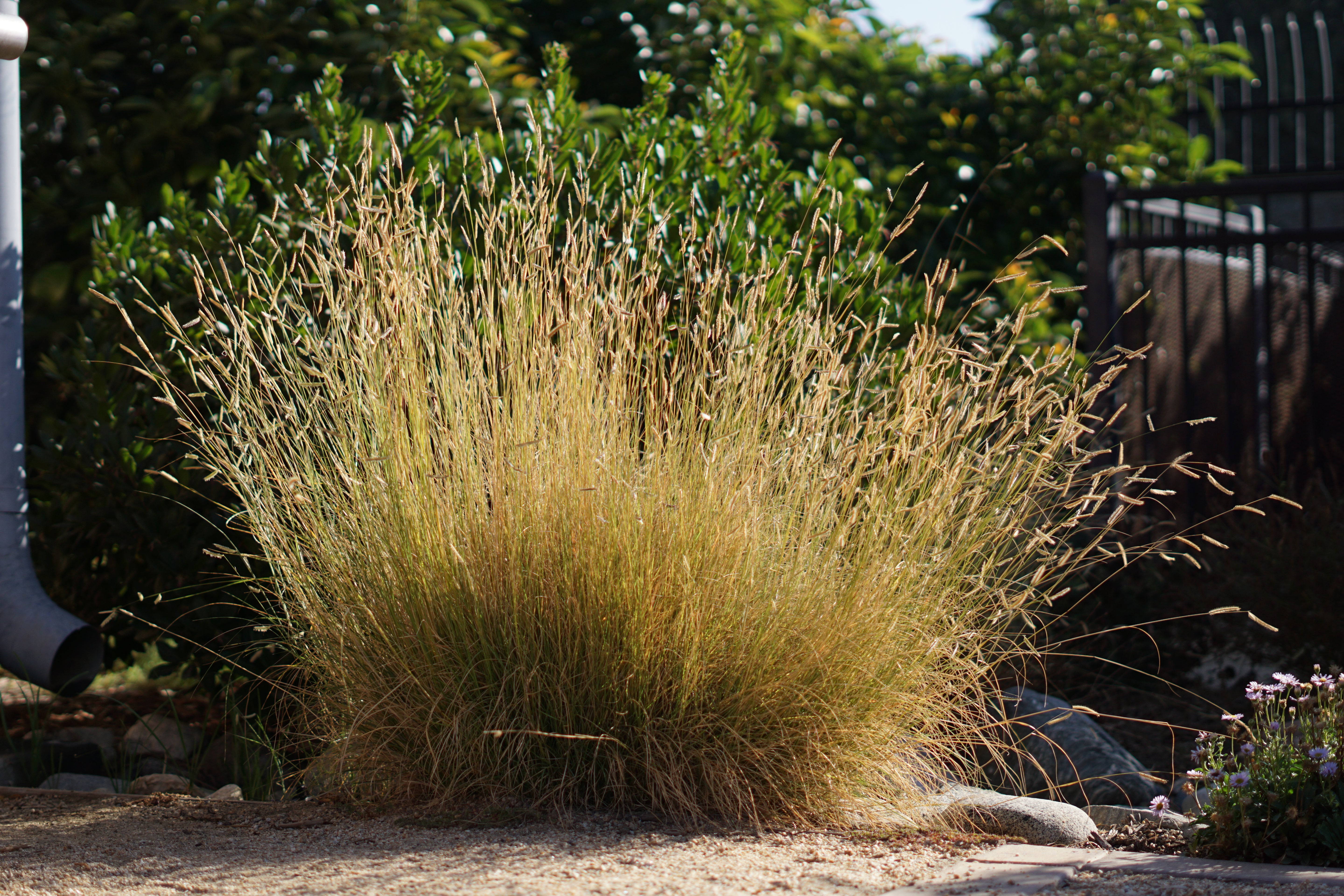 Tough low-water meadow grass or accent. Interesting flowers remain beautiful after drying on the plant. Leaves are food for skipper butterfly caterpillars.