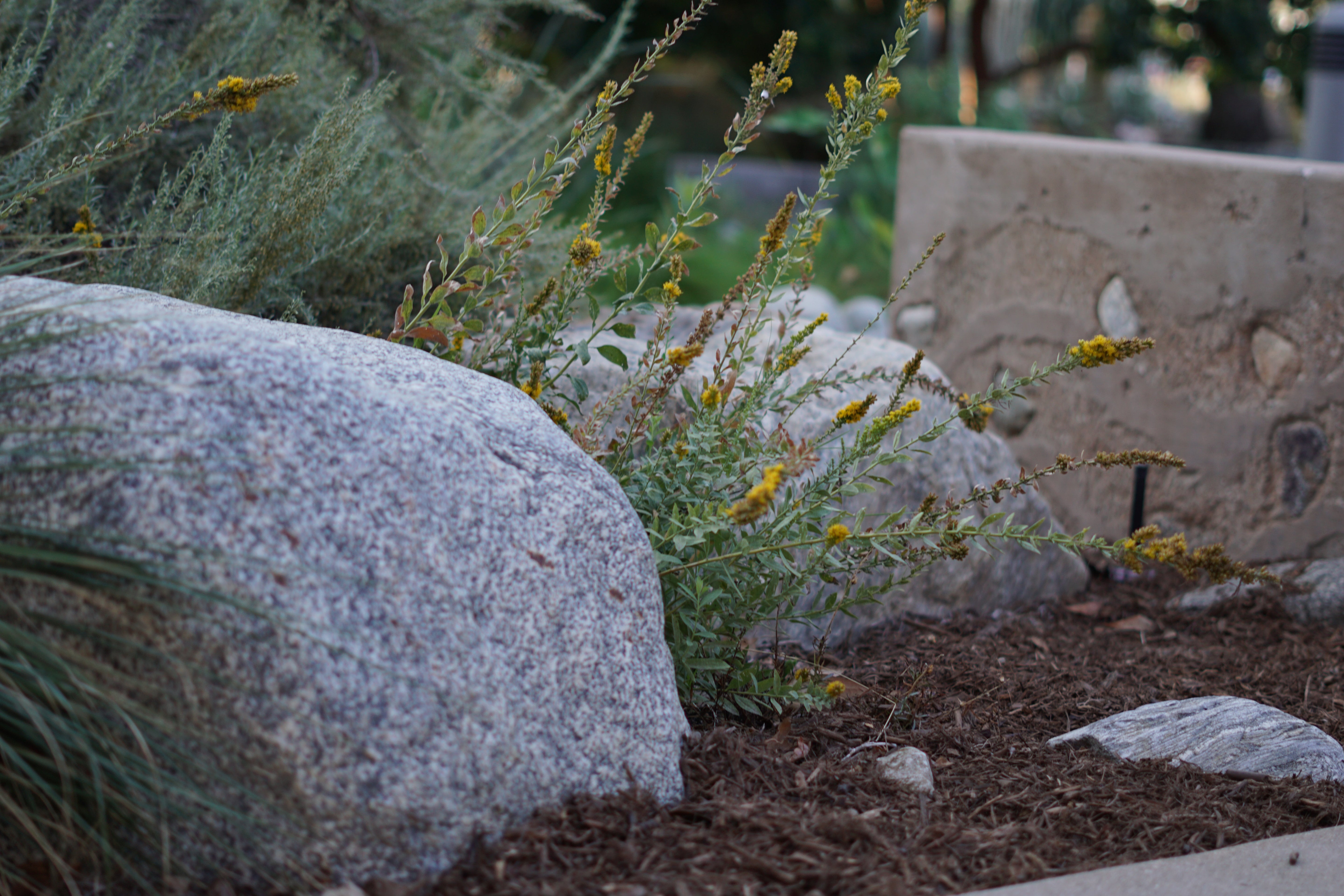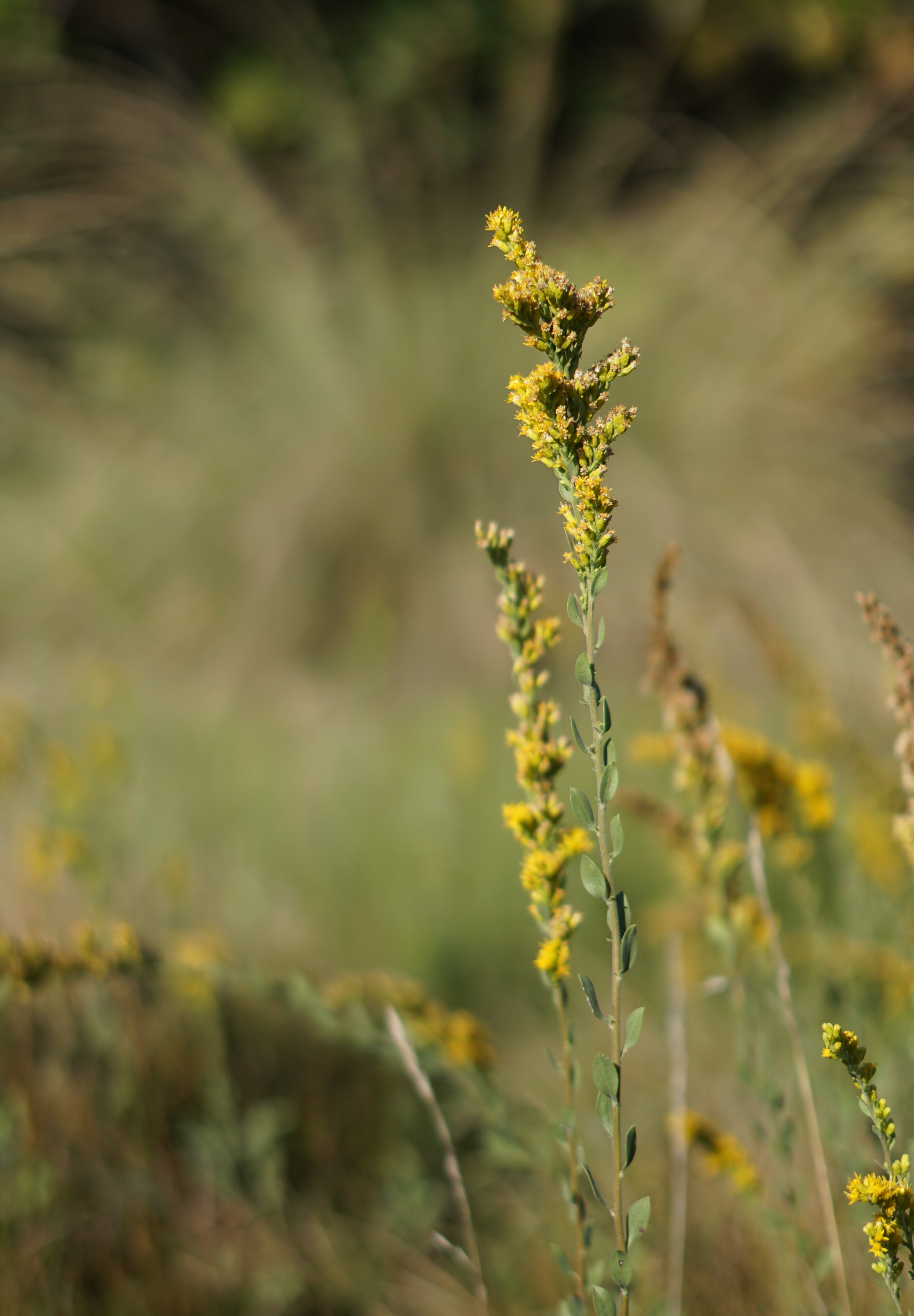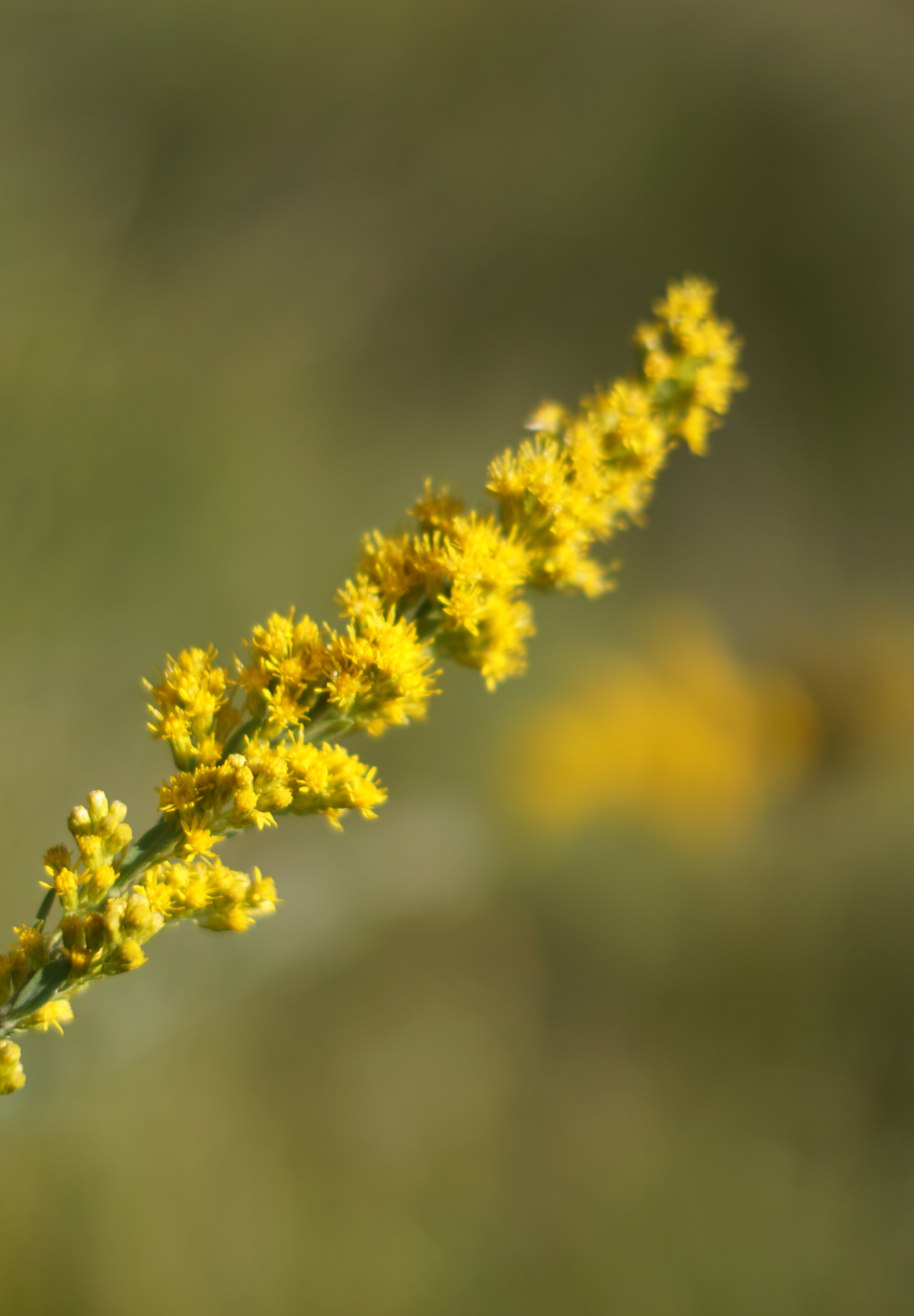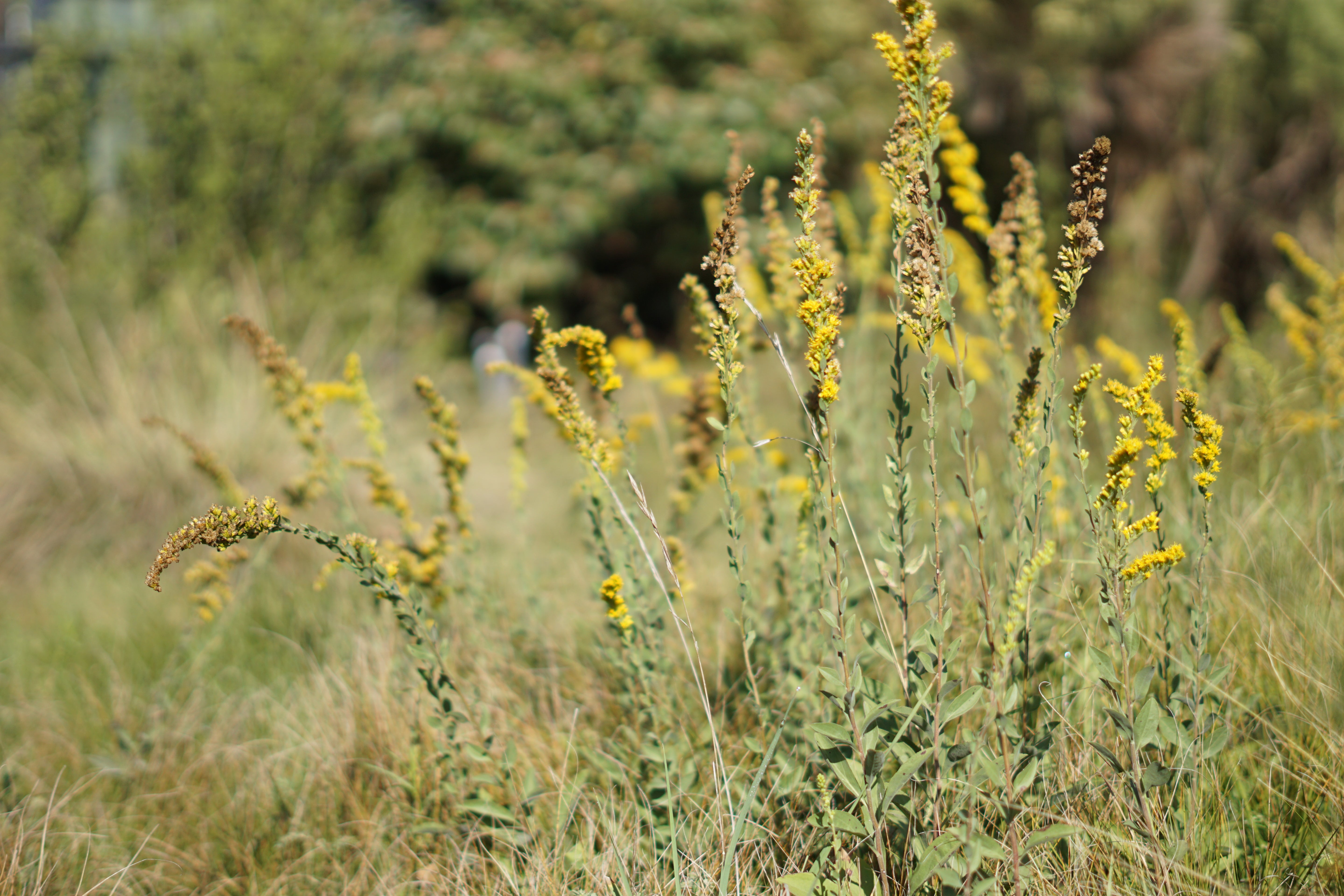 Tall clusters of golden blooms late summer and fall. Important pollinator plant. Tough and adaptable but can spread aggressively and can cause seasonal allergies.