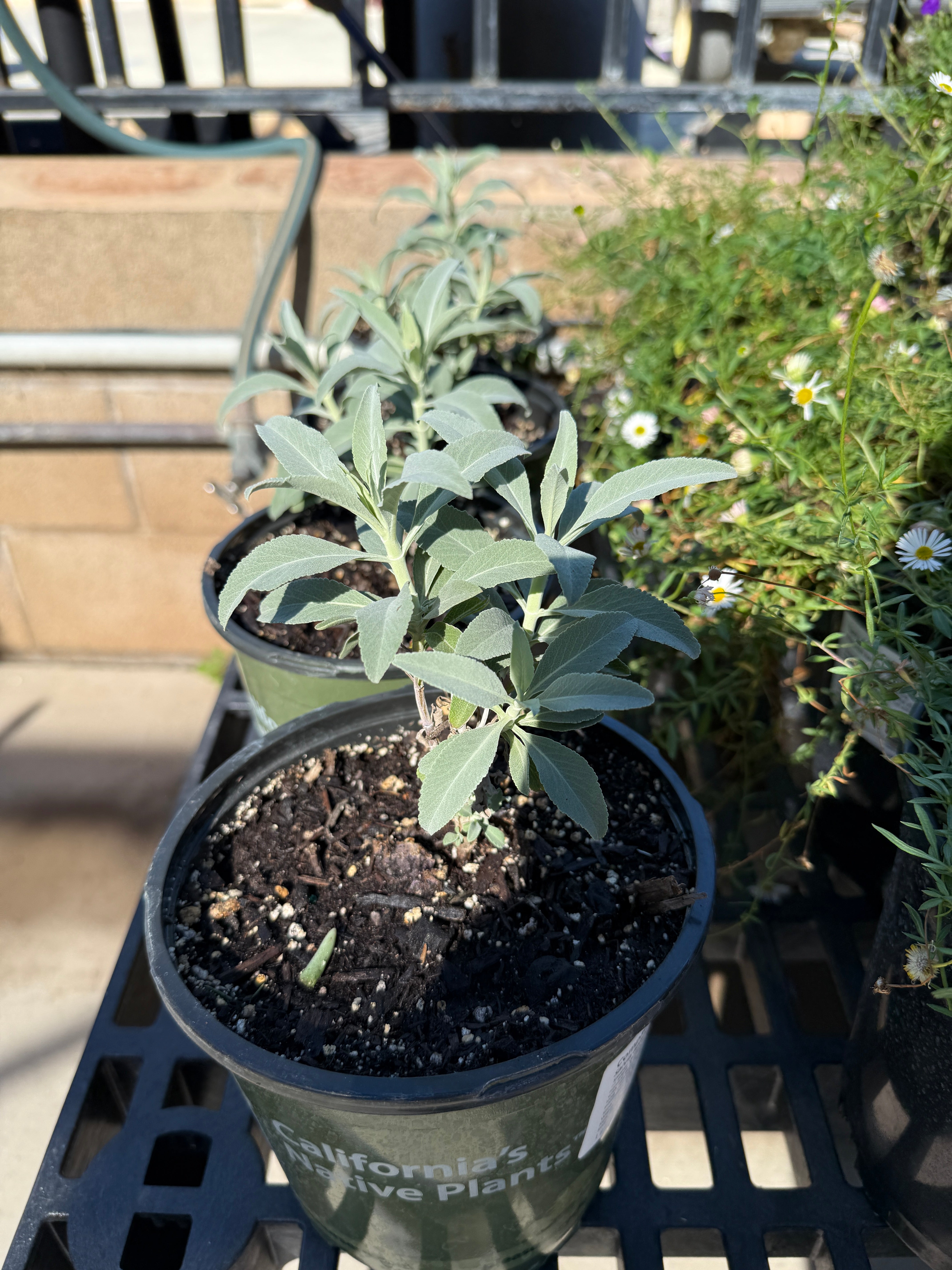 Smaller version of White Sage, perfect for anyone who wants to plant it somewhere where there is not enough room for the normal species. Great in parkways and smaller areas with reflected heat. Wonderfully scented leaves and long clusters of white flowers in Spring adored by pollinators and hummingbirds.