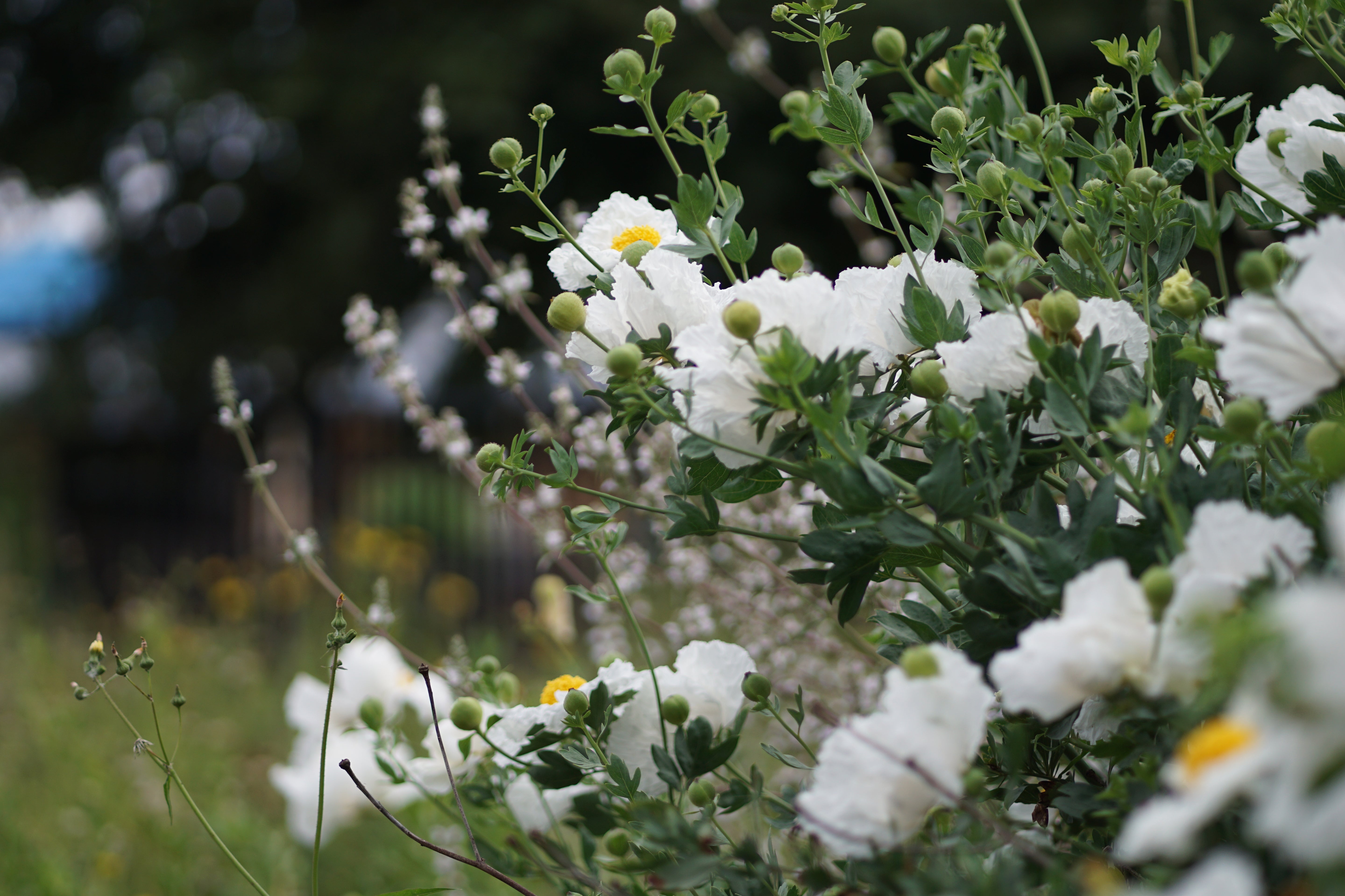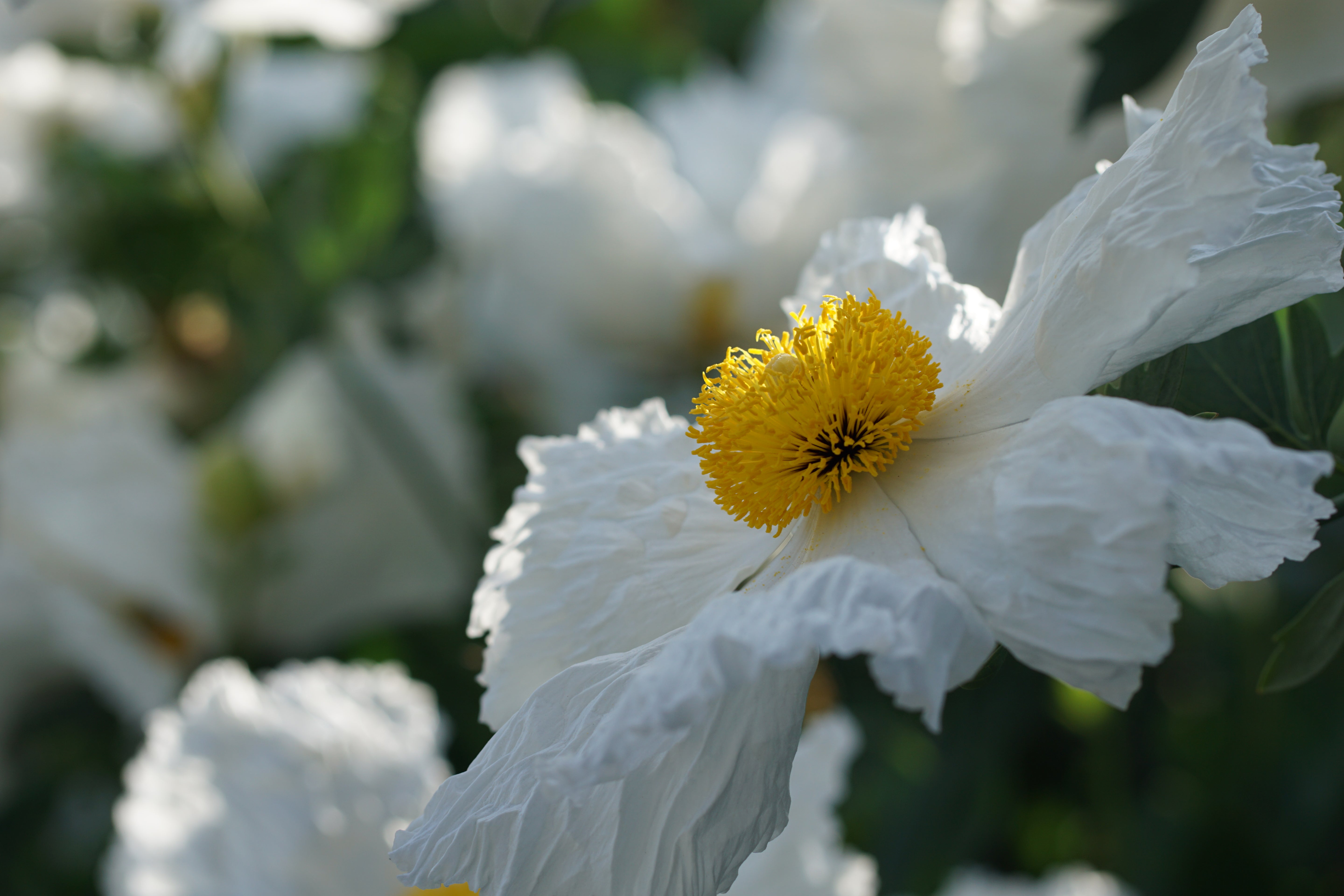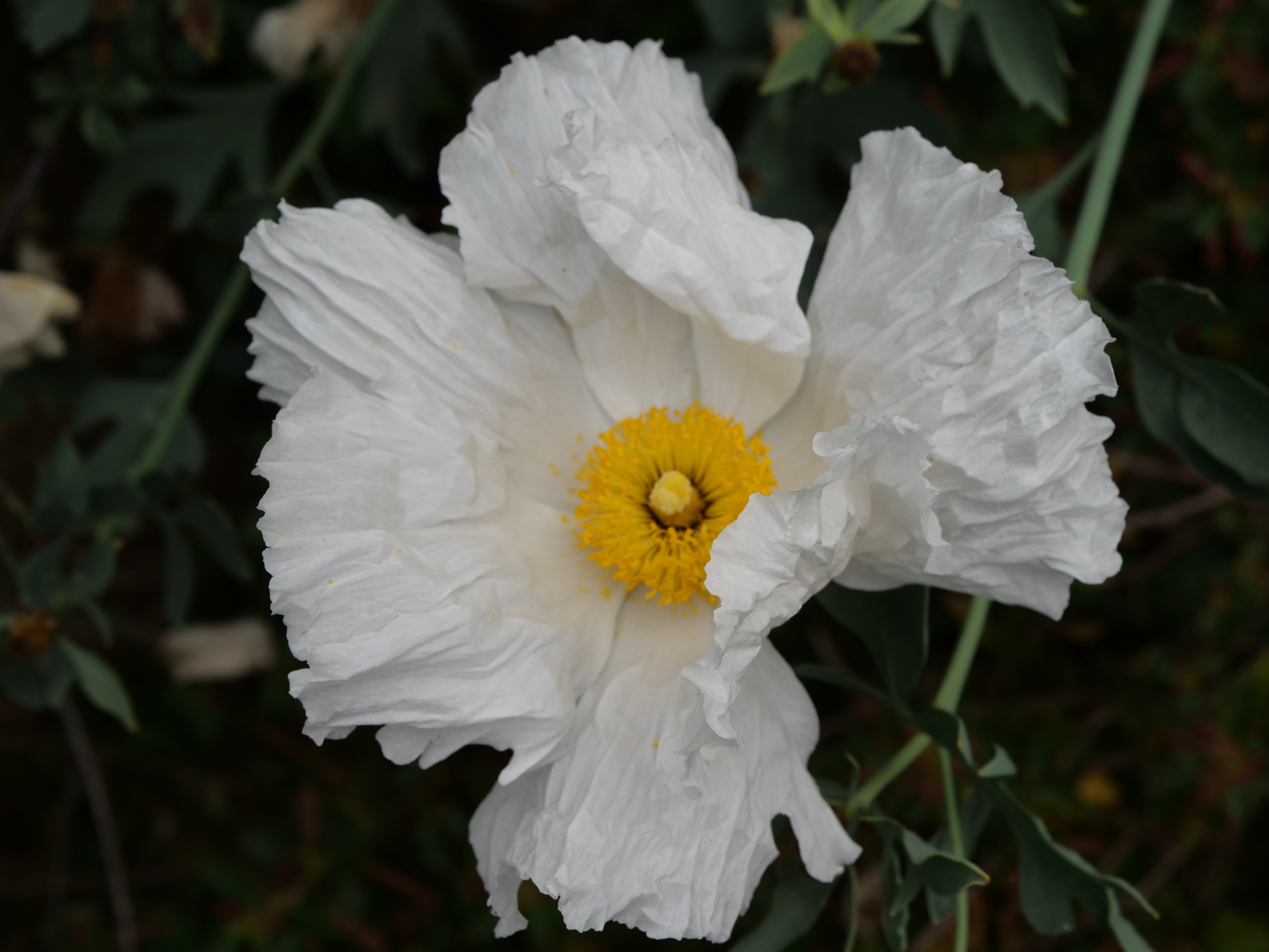 One of California's most striking perennial plants, with large flowers that looks like a fried egg. Matilija poppy grows fast, 6 - 10 ft fall and spreads aggressively. It thrives in well-drained soils with little summer water. Has sensitive roots, don't disturb while planting. Cut it down to the ground in the fall for fresh spring growth - perfect for slopes! Use a shovel and dig out rhizomatic shoots to control the spread.