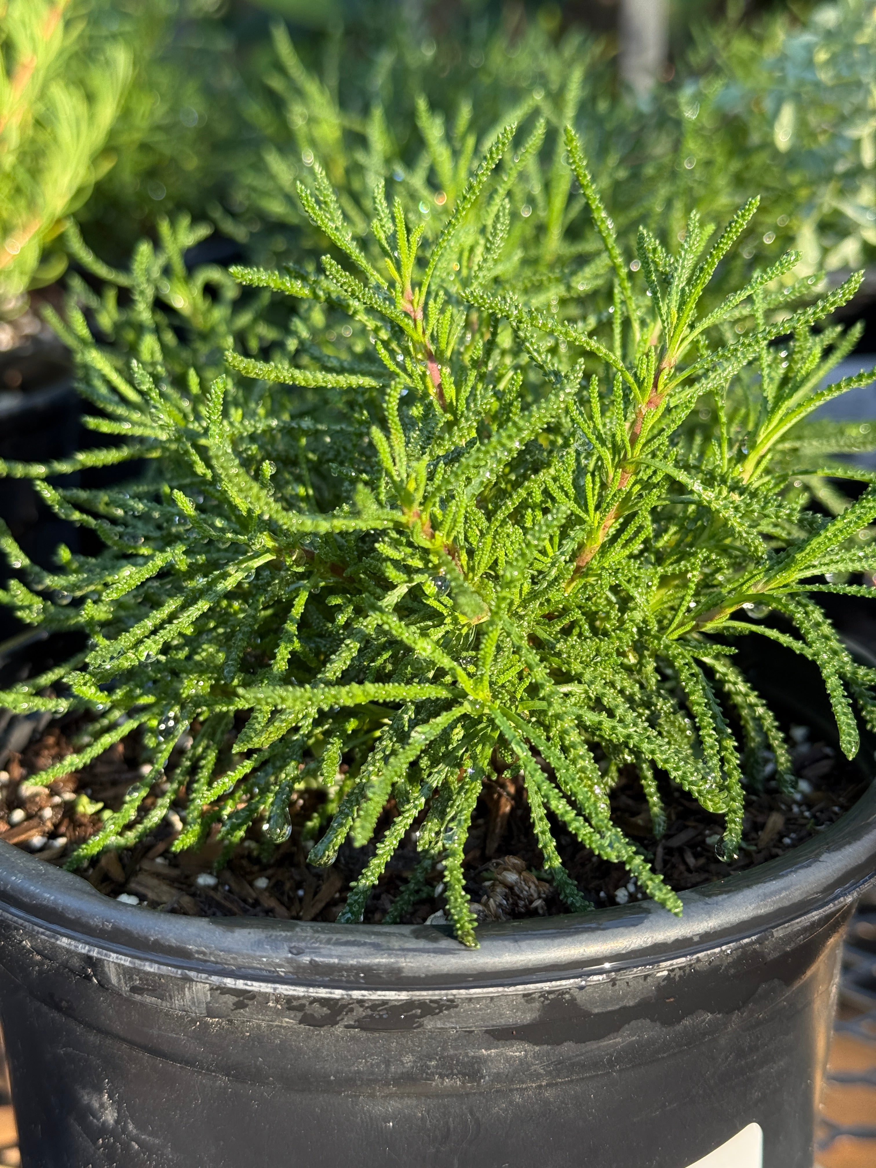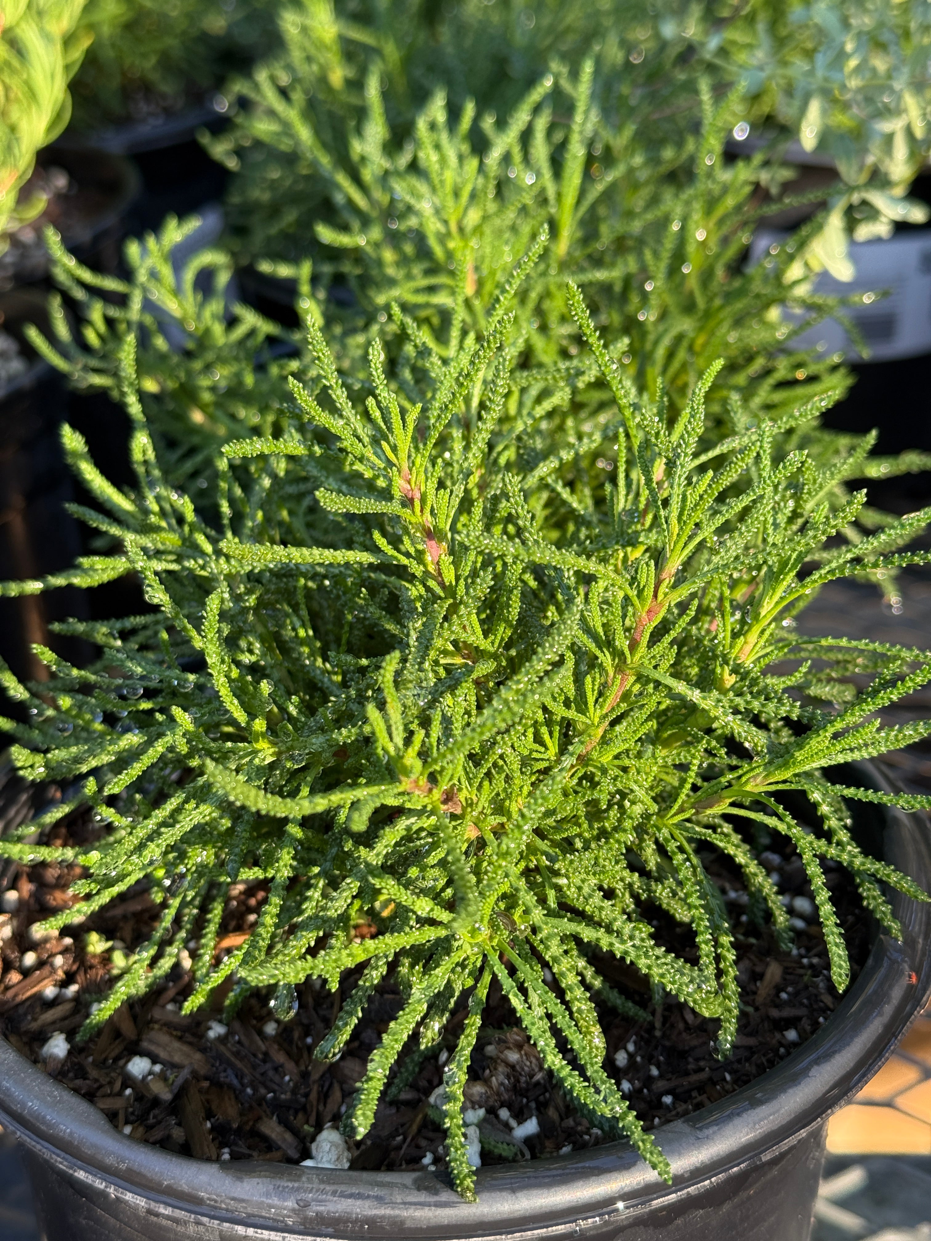 Attractive 1-2’ compact mounding mini-shrub with dark-green aromatic foliage that makes a perfect contrast to lavender in a waterwise garden. Cream to yellow colored button flowers in the spring. Be sure to plant in well-drained soil and cut back annually in late winter to stimulate vigorous new growth and keep the plant compact and looking good.
