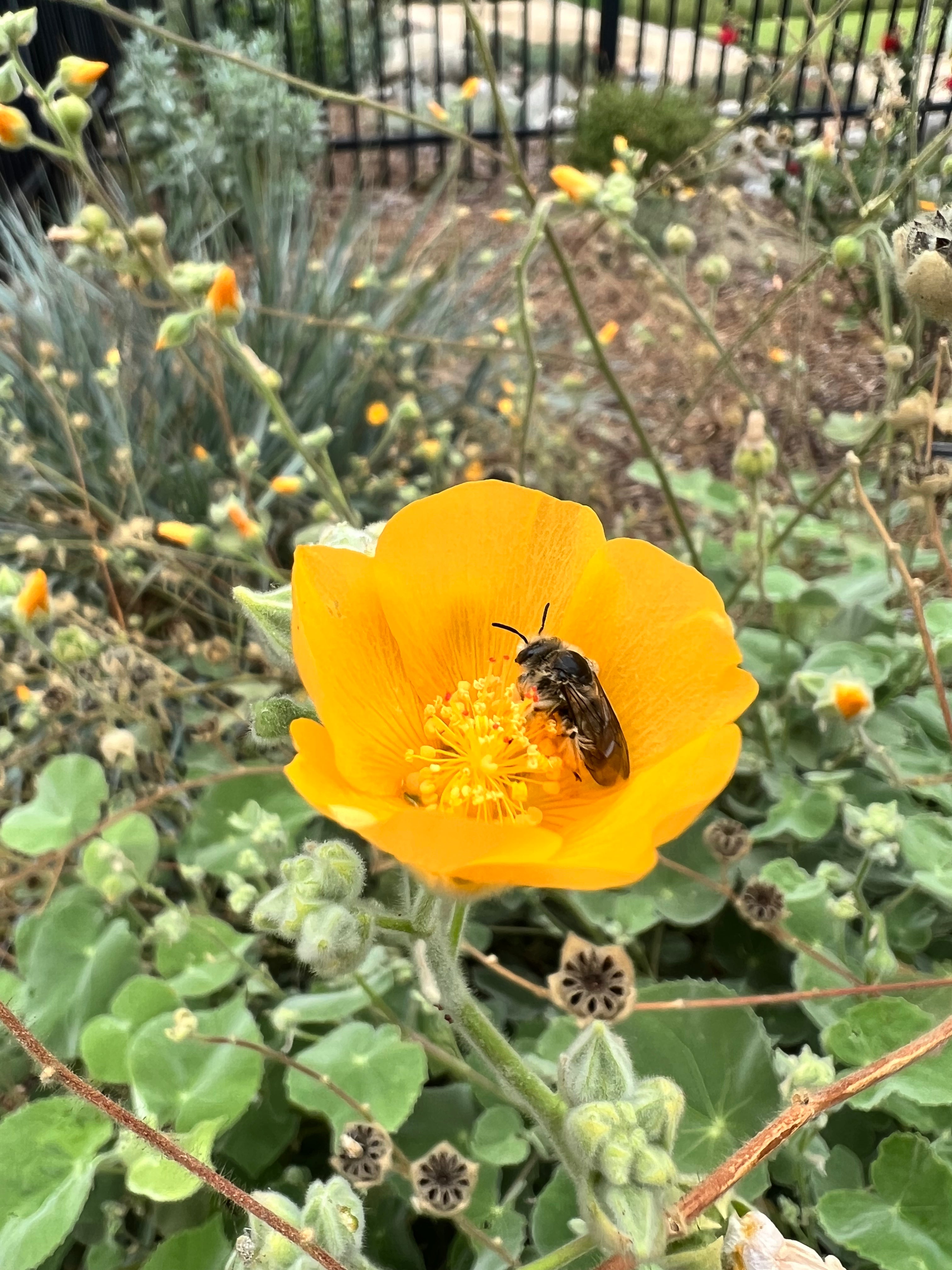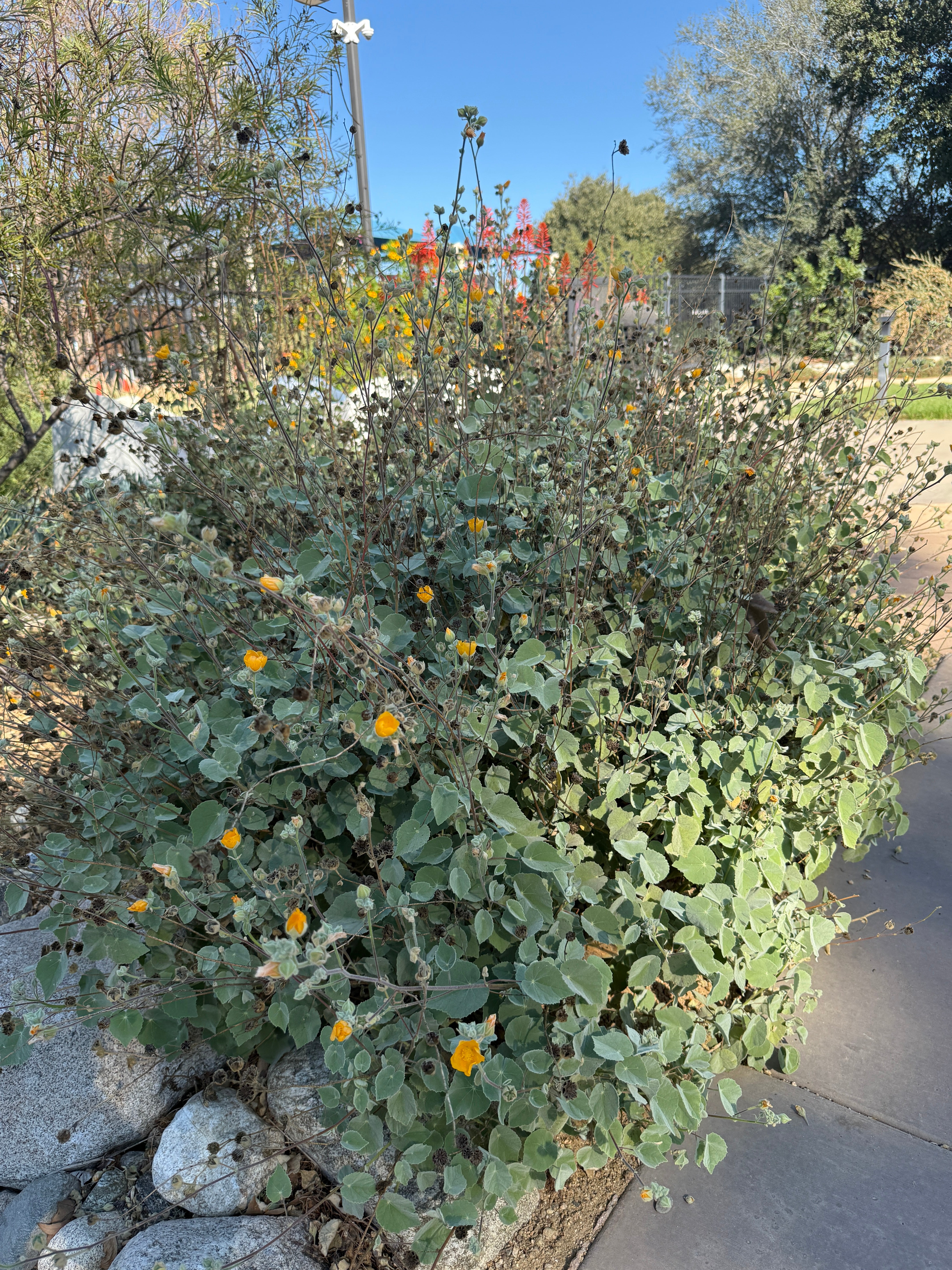 CA desert shrub with orange flowers in summer and much of the rest of the year. Adored by pollinators. Fussy leaves almost glow when backlit by the sun.