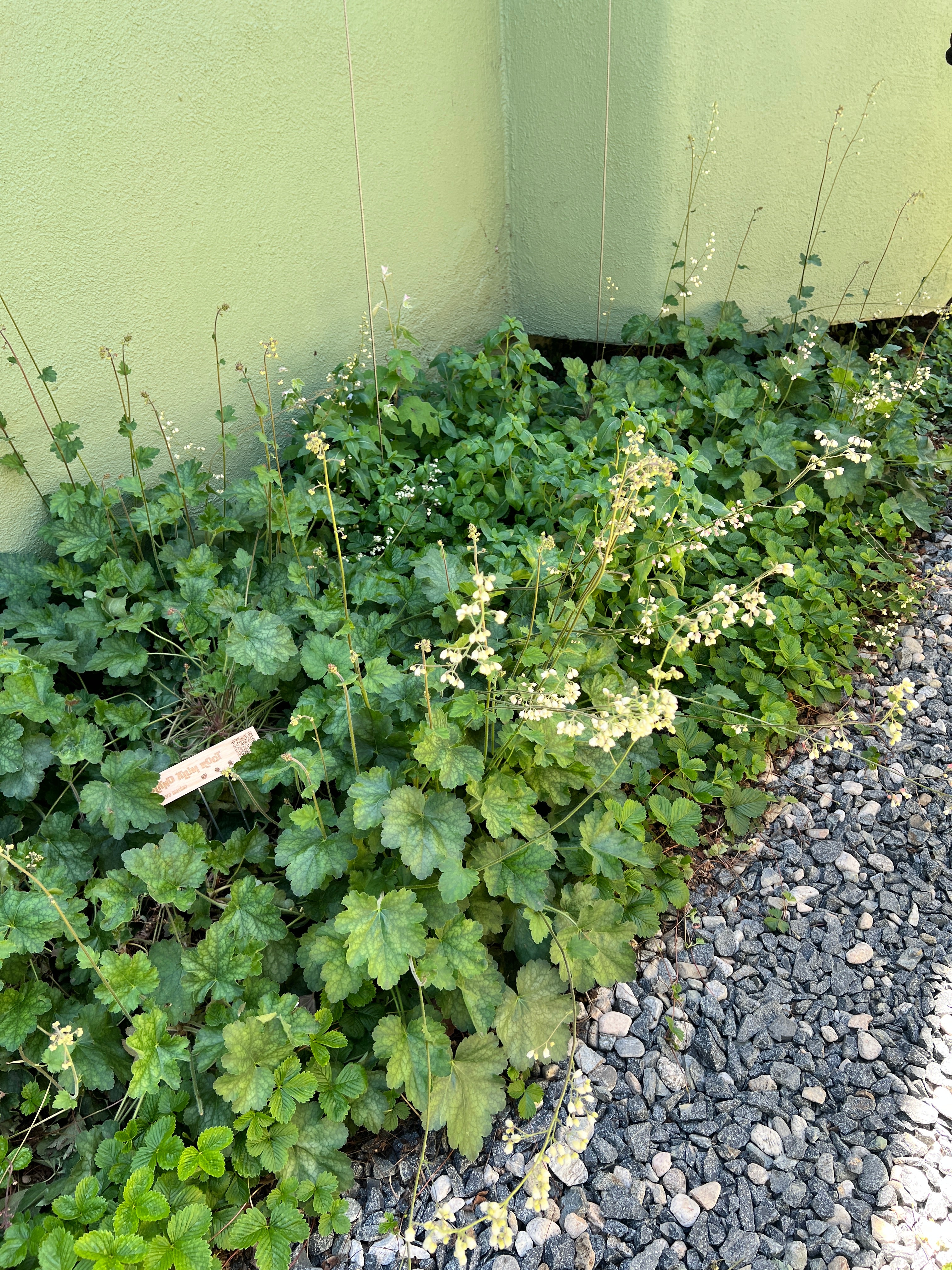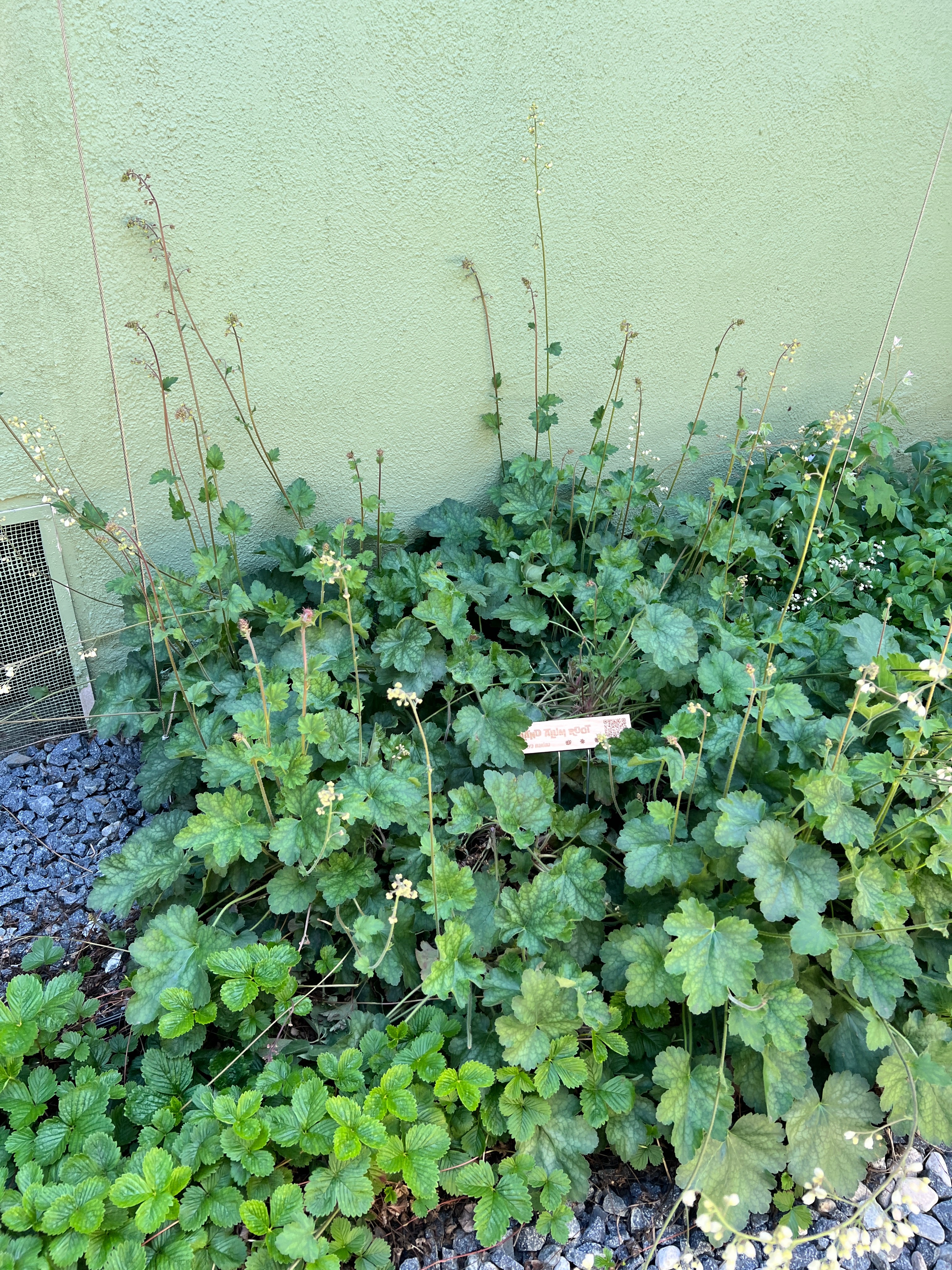 Favorite native coral bells selection. Great for low or medium water shade in the ground or pots.  Delicate spring flowers attract hummingbirds.