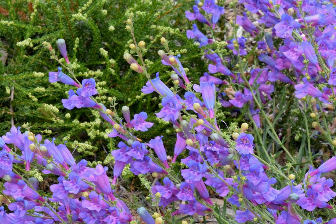 Highly ornamental selection of a local native perennial. Outrageously pretty iridescent purple-blue spring flowers are also a favorite of hummingbirds and pollinators.